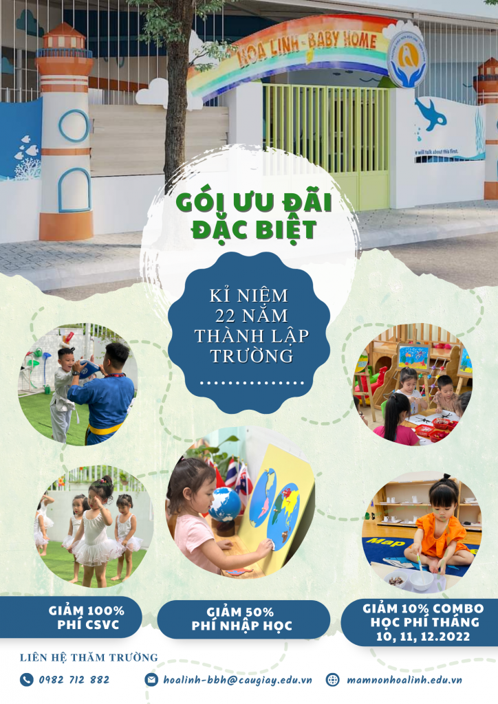 Chương trình ưu đãi ̣ ́ cực kỳ hấp dẫn để chào đón cột mốc năm ̀ ̀ và ́ ̂̉ của ̛̛̀ ̂̀ – . Giảm 100% phí CSVC. Giảm 50% phí nhập học. Giảm 10% combo học phí tháng 11 và tháng 12 Chương trình chỉ dành cho các bé đăng ký trong […]
