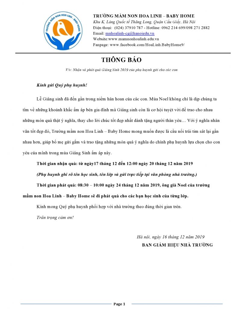 Kính gửi: Quý Phụ huynh! Nằm trong chương trình học tuần 2 tháng 12 năm 2019 và nhằm giúp các bé có thêm nhiều sự trải nghiệm thú vị về chủ đề Giáng Sinh, trường mầm non Hoa Linh – Baby Home tổ chức buổi tham quan Nhà thờ Cửa Bắc cho trẻ khối mẫu […]