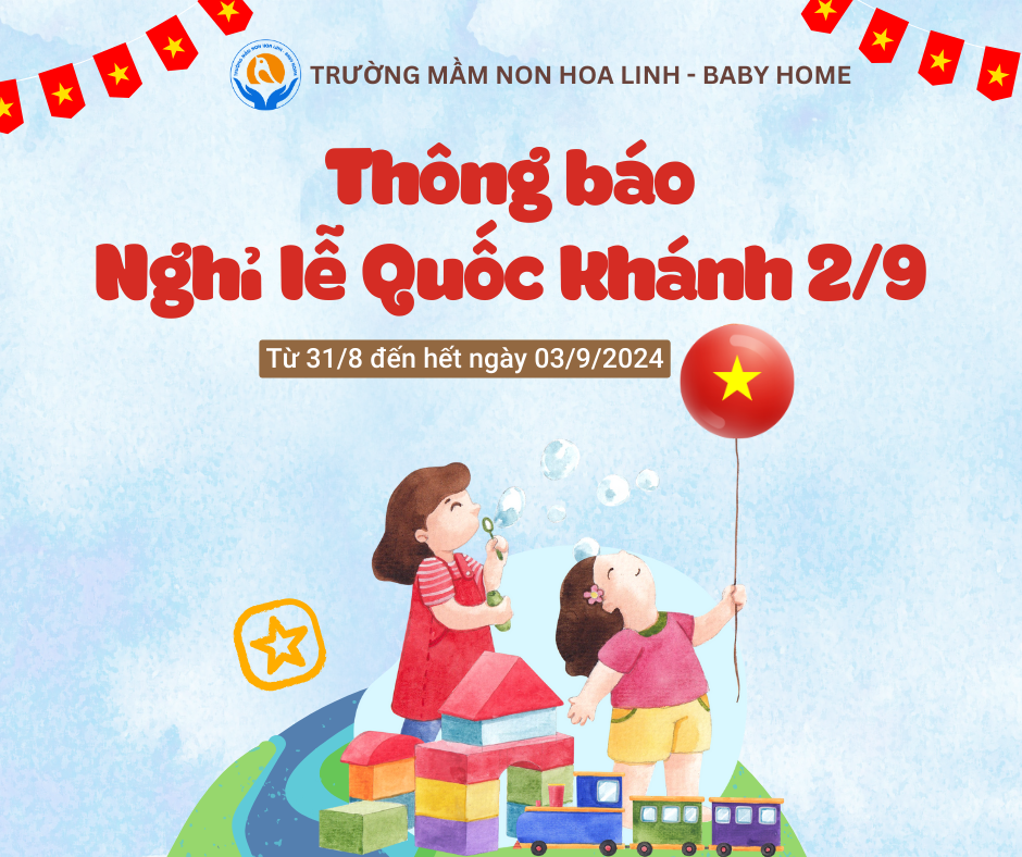📌 Kính gửi đến Quý phụ huynh, CBGV-NV và các con học sinh thông báo về ngày nghỉ lễ Quốc khánh 2/9 của nhà trường:
