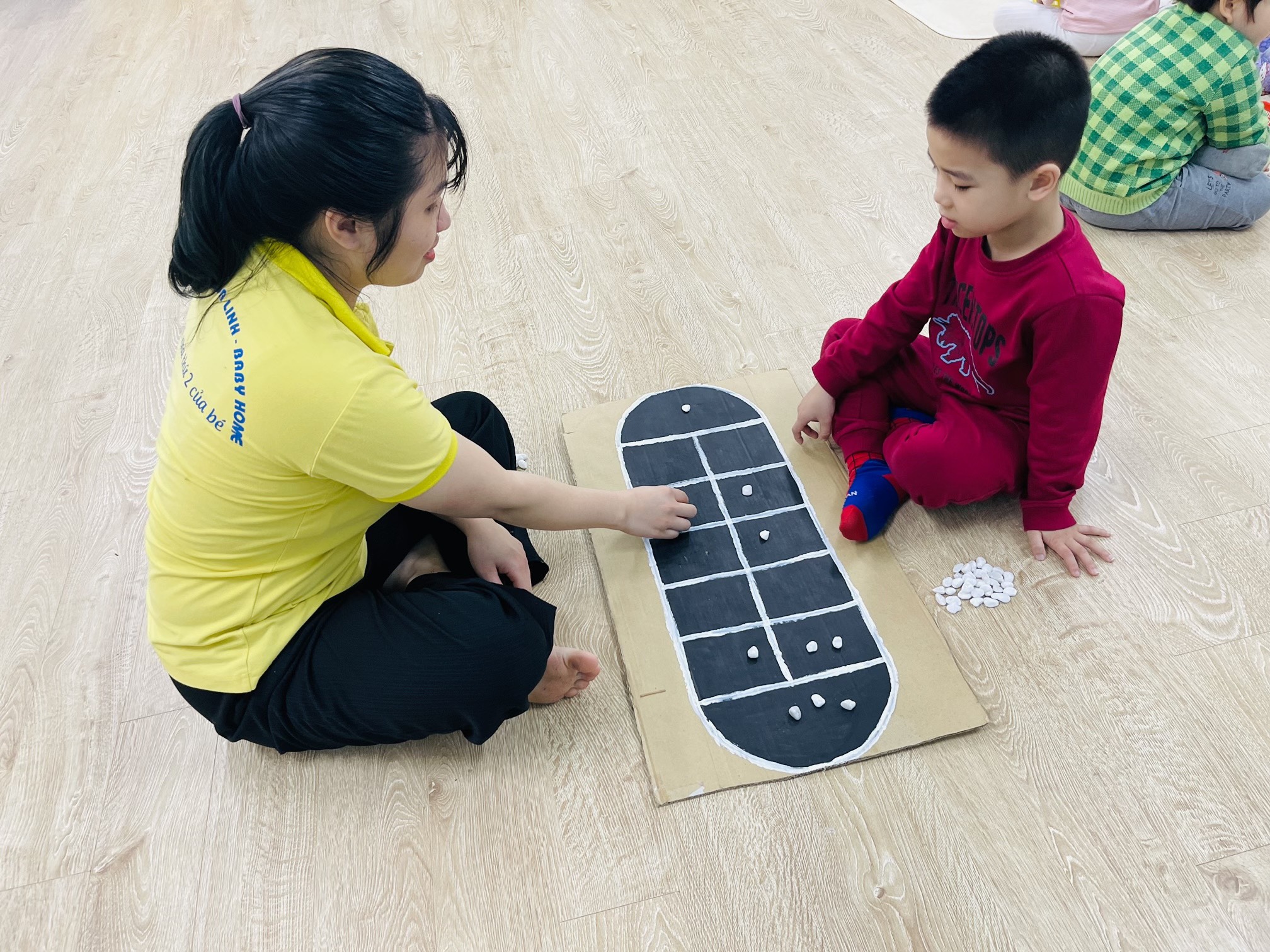 ❣️Trò chơi này mình có thể chơi ở bất cứ nơi nào như nền nhà, nền sân, lớp học bằng những vật dụng rất đơn giản như sỏi, đá, hạt đậu… Các con đã được các cô hướng dẫn cách chơi rồi vậy còn chần chờ gì mà bố mẹ và các con không cùng nhau chơi…